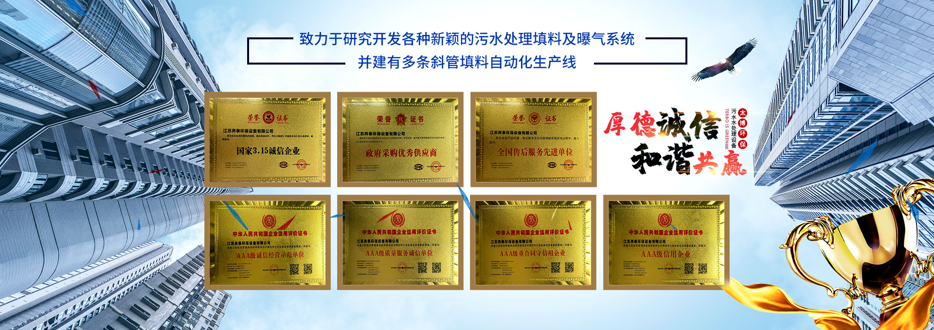 無錫太博環??萍加邢薰疚挥谖覈劽沫h保之鄉—宜興市高塍鎮,專業生產各種加藥裝置,機械格柵,疊羅污泥脫水機,mbr膜,填料曝氣器等污水水處理設備配件等,已有數十年的歷史。本公司著重致力于研究開發各種新穎的污水處理填料及曝氣系統,并建有多條斜管填料自動化生產線。   多年來,我們視用戶為上帝,以誠信為本,以我們過硬的產品質量為基礎,為各地的環保同行及用戶提供了一批又一批質優價廉的環保配件。...
